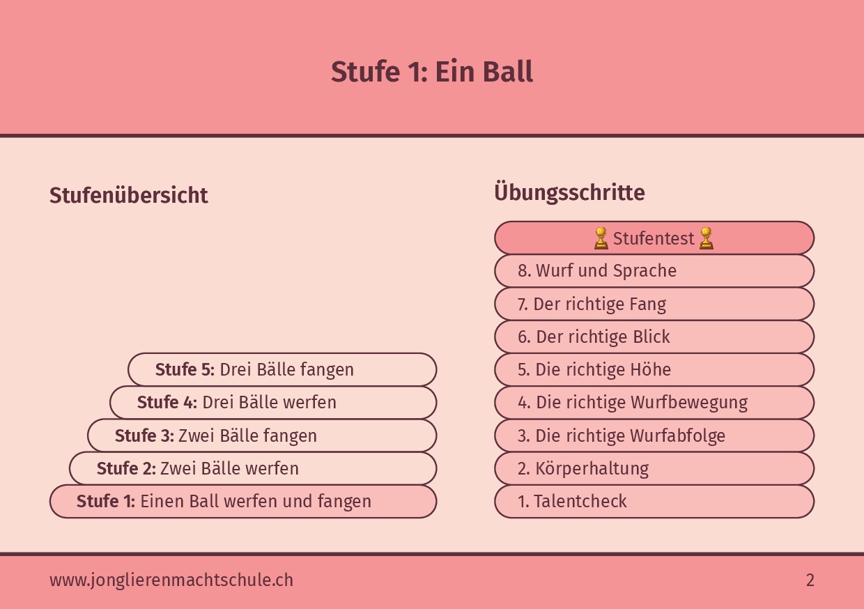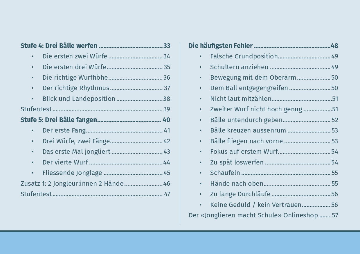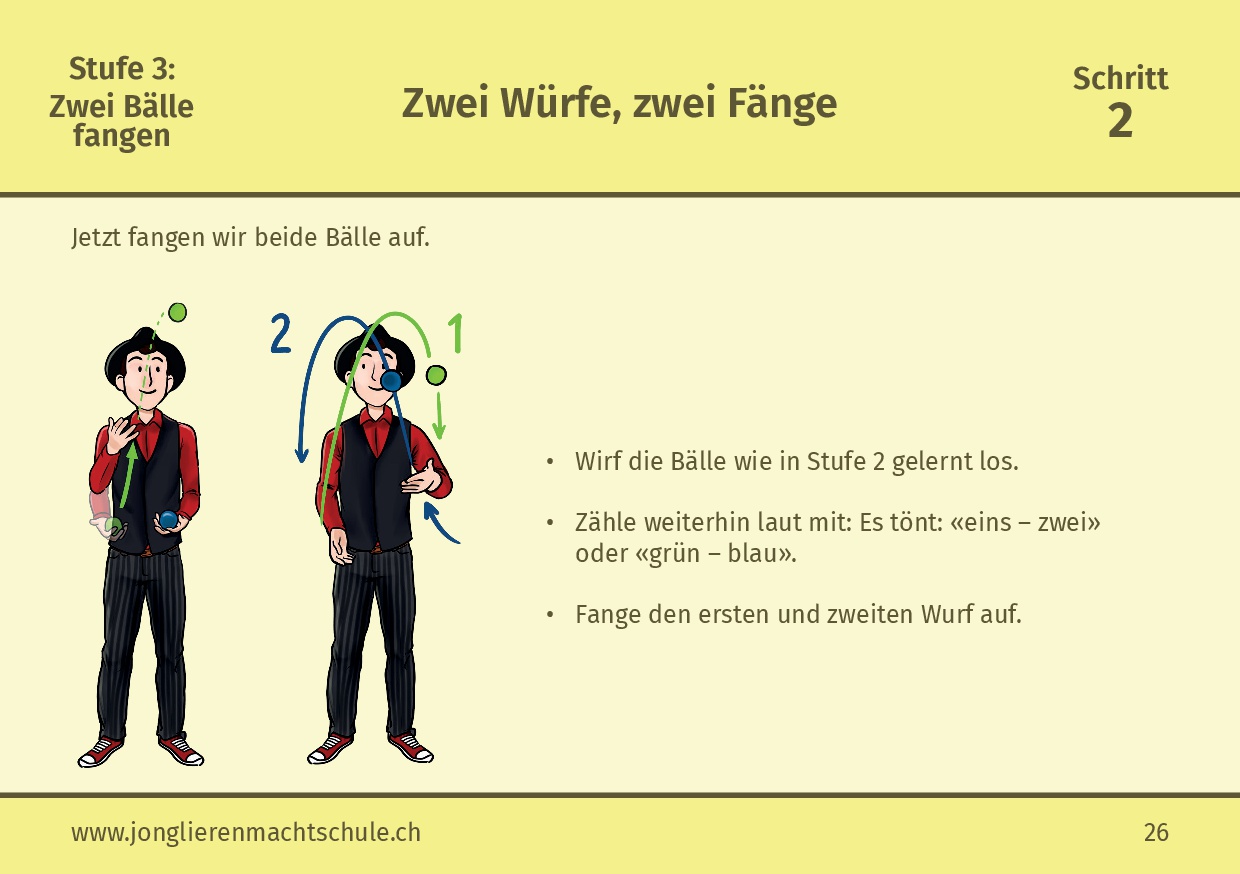 Noch mehr praxisnahe Tipps, methodische Anleitungen und abwechslungsreiche Übungen findest du im Lehrmittel von «Jonglieren macht Schule», das speziell für den Einsatz im Unterricht entwickelt wurde.