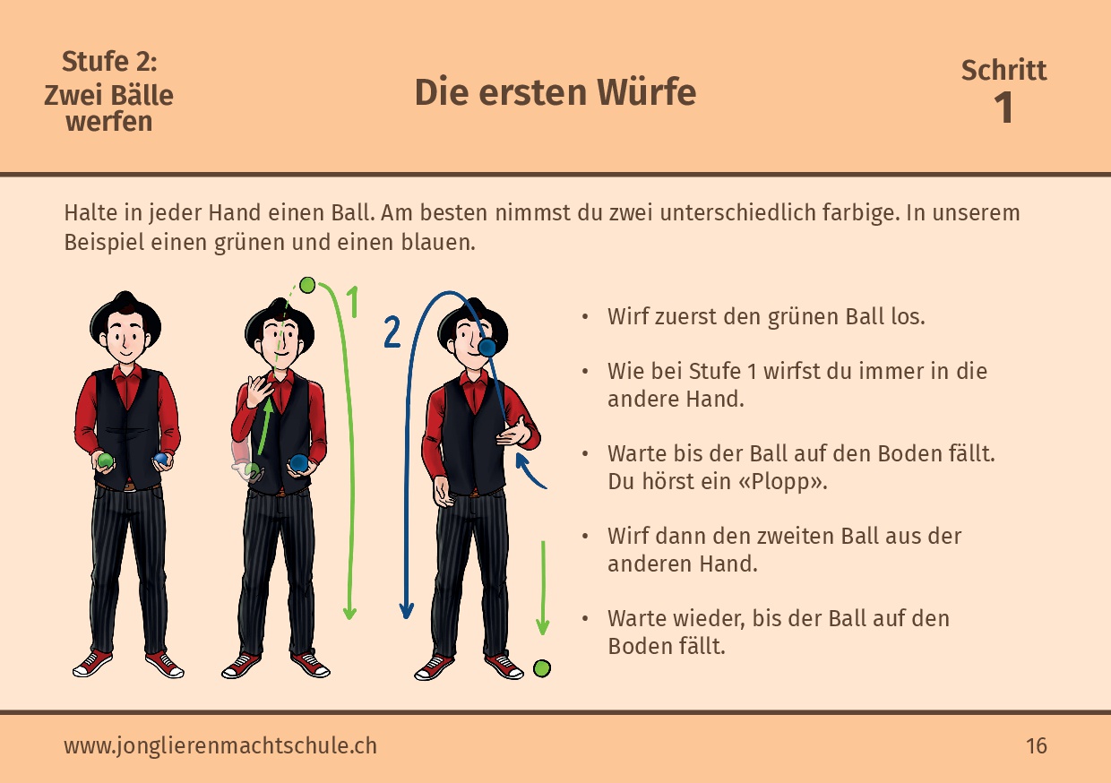 Lade die Kurzanleitung zum Jonglieren als PDF herunter – perfekt für den schnellen Einstieg oder als Begleitmaterial für deine Lektionen.